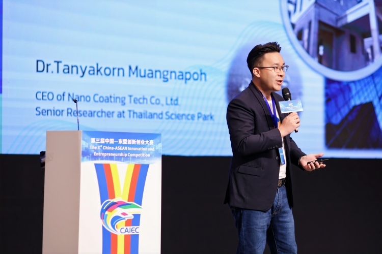 Nano Coating Tech有限公司是一家总部位于泰国科学园的深度科技初创企业,专注于为太阳能板和建筑表面提供先进纳米涂层解决方案。在第三届中国—东盟创新创业大赛中,Nano Coating Tech企业代表Tanyakorn Muangnapoh带来的Nano Coating Tech – Advanced Nano Coating Solutions for Solar Panels and Buildings(纳米涂层技术——面向光伏板与建筑体的先进纳米涂层解决方案)项目,获得大赛企业组三等奖。